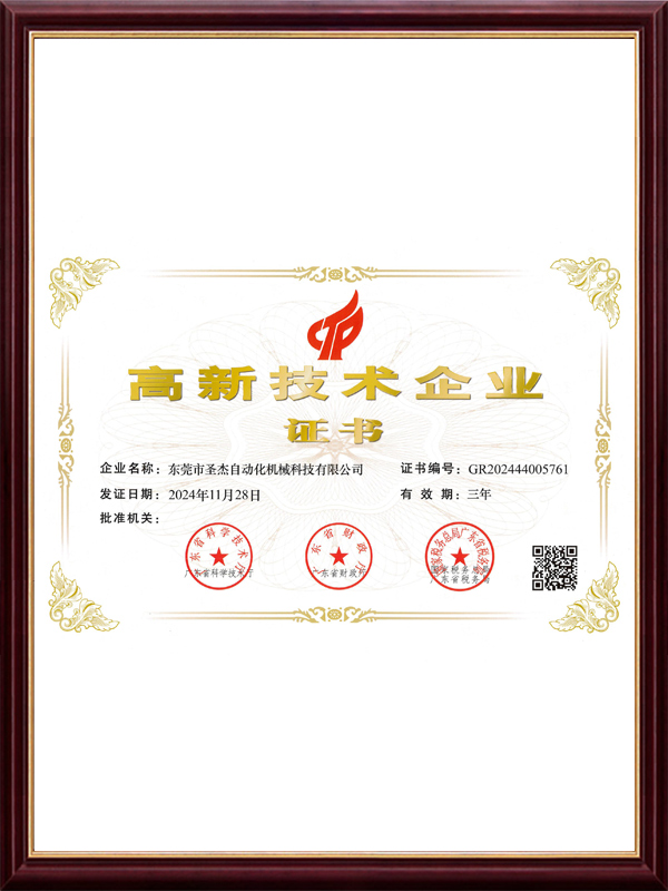 東莞市圣杰自動化機械科技有限公司成立于2010年,座落于電子名鎮——廣東省東 莞市石碣鎮,注冊資金800萬,擁有多項發明專利,實用新型專利,并通過了 ISO9001質量管理體系認證,經過多年的發展與技術沉淀,公司已發展成為一家專 業從事非標自動化設備研發、生產、銷售為一體的高新技術型企業,并在行業具有 一定的知名度。 圣杰擁有一支高素質、高效率且多年從事非標自動化設備研發與生產的工程技術團 隊,為客戶提供工程設計、制造安裝、現場調試、技術培訓等全方位的自動化設備 解決方案。主要涉及行業有:電子連接器行業,建筑五金行業,儀表行業,汽車配 件行業等。